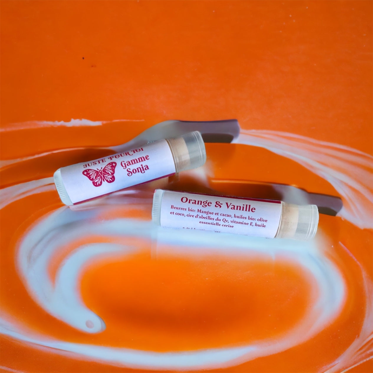 Avec sa composition ultra-minimaliste, notre baume à lèvres orange vanille est un véritable trésor d’ingrédients naturels.