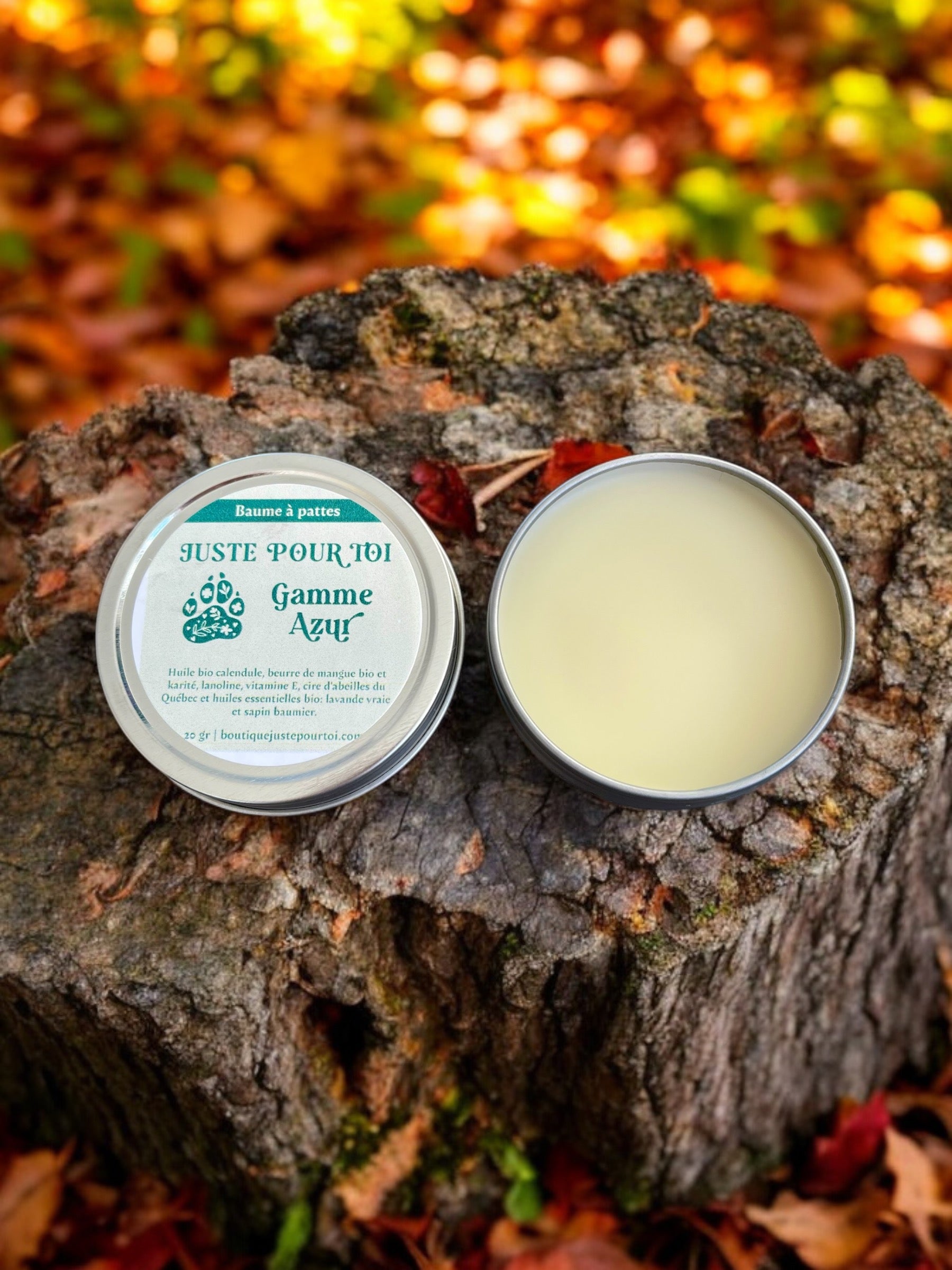 Le Baume à Pattes Lavande et Sapin pour chien est un soin naturel conçu pour protéger et réparer les coussinets, souvent soumis à des agressions comme le froid, la chaleur ou les surfaces rugueuses. Ce baume est enrichi en ingrédients nourrissants qui hydratent et apaisent la peau.