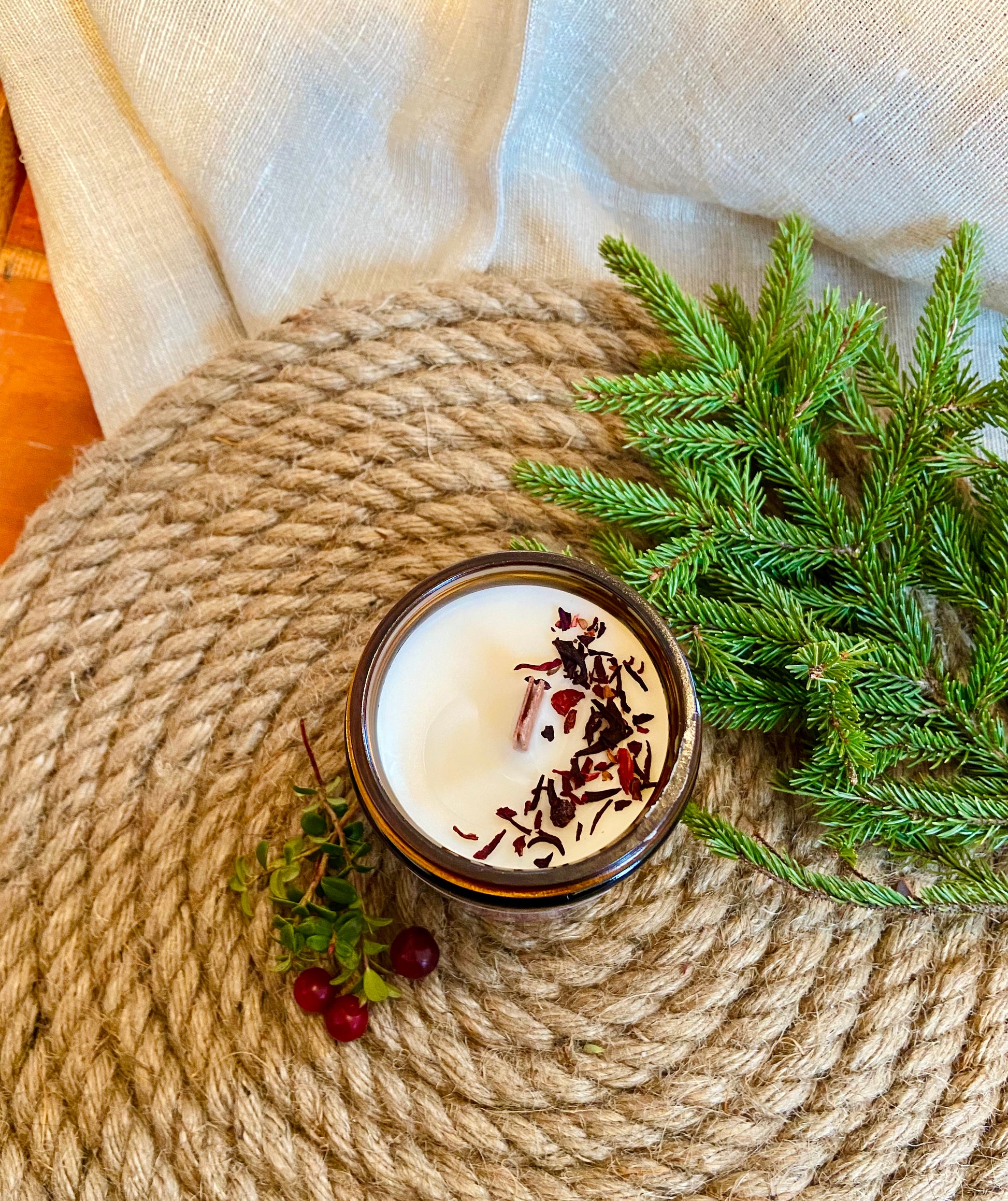 Cire de soya bio, mèche cèdre du Qc et fragrance naturelle airelle