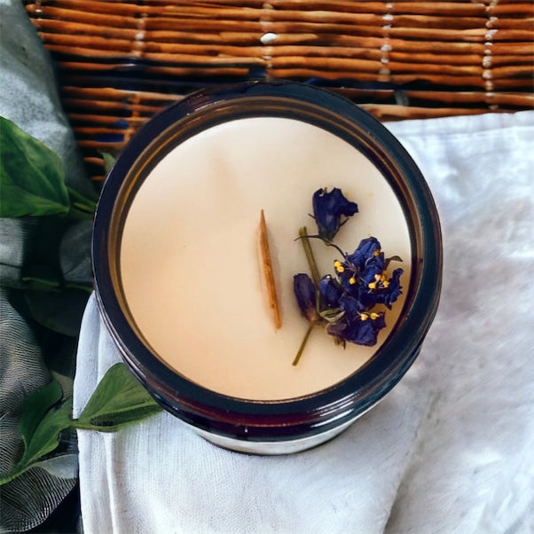 Chaque bougie est exclusive et décorée selon les fleurs et plantes médicinales disponibles en inventaire. Votre bougie peut donc être différente de celle représenté sur la photo.