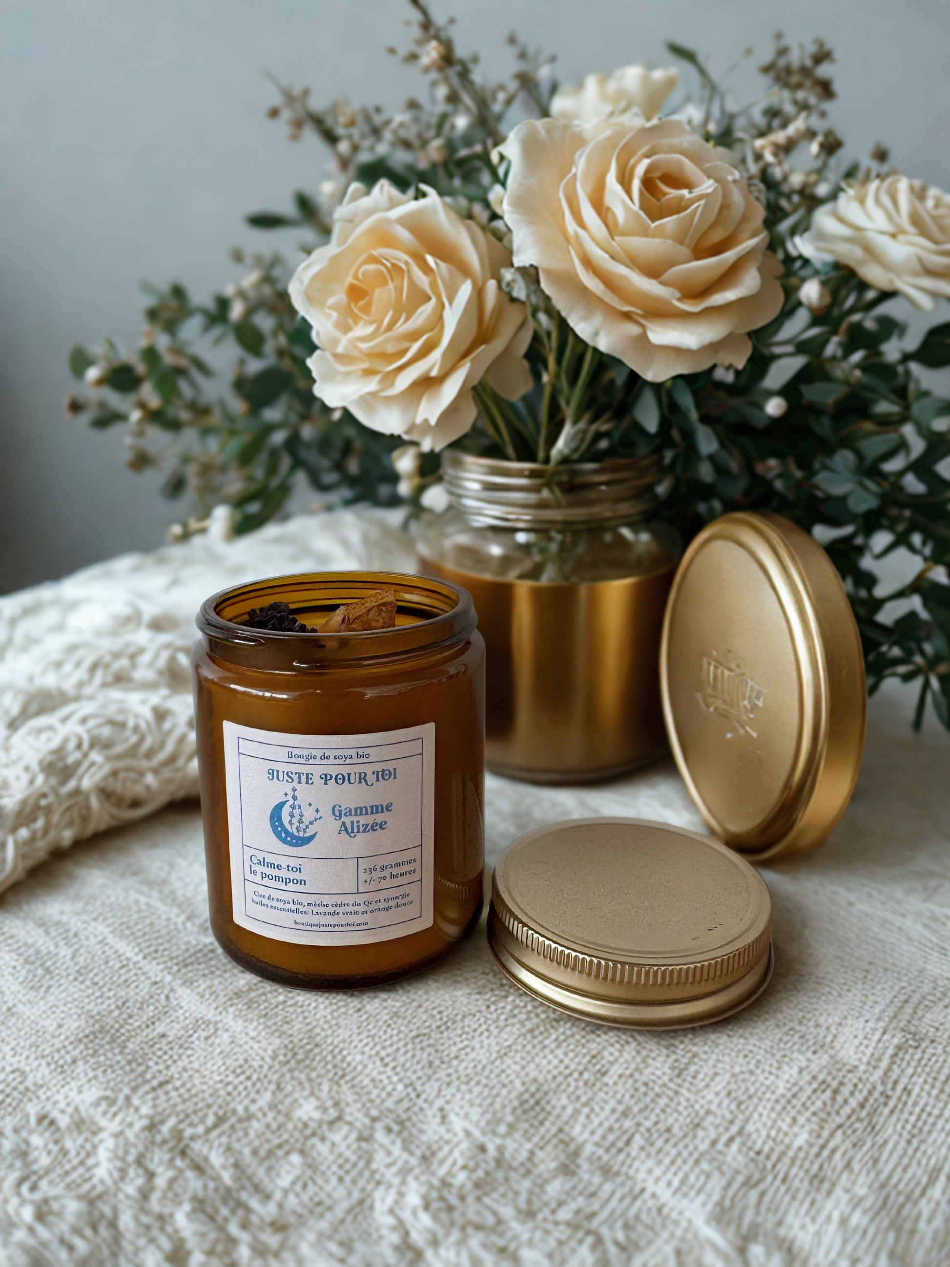 La bougie "Calme toi le pompon" est fabriquée avec des ingrédients de haute qualité, pour assurer une combustion propre et une diffusion optimale du parfum. Sa lueur tamisée crée une ambiance relaxante, idéale pour une séance de méditation, un bain apaisant ou simplement pour vous détendre après une longue journée.