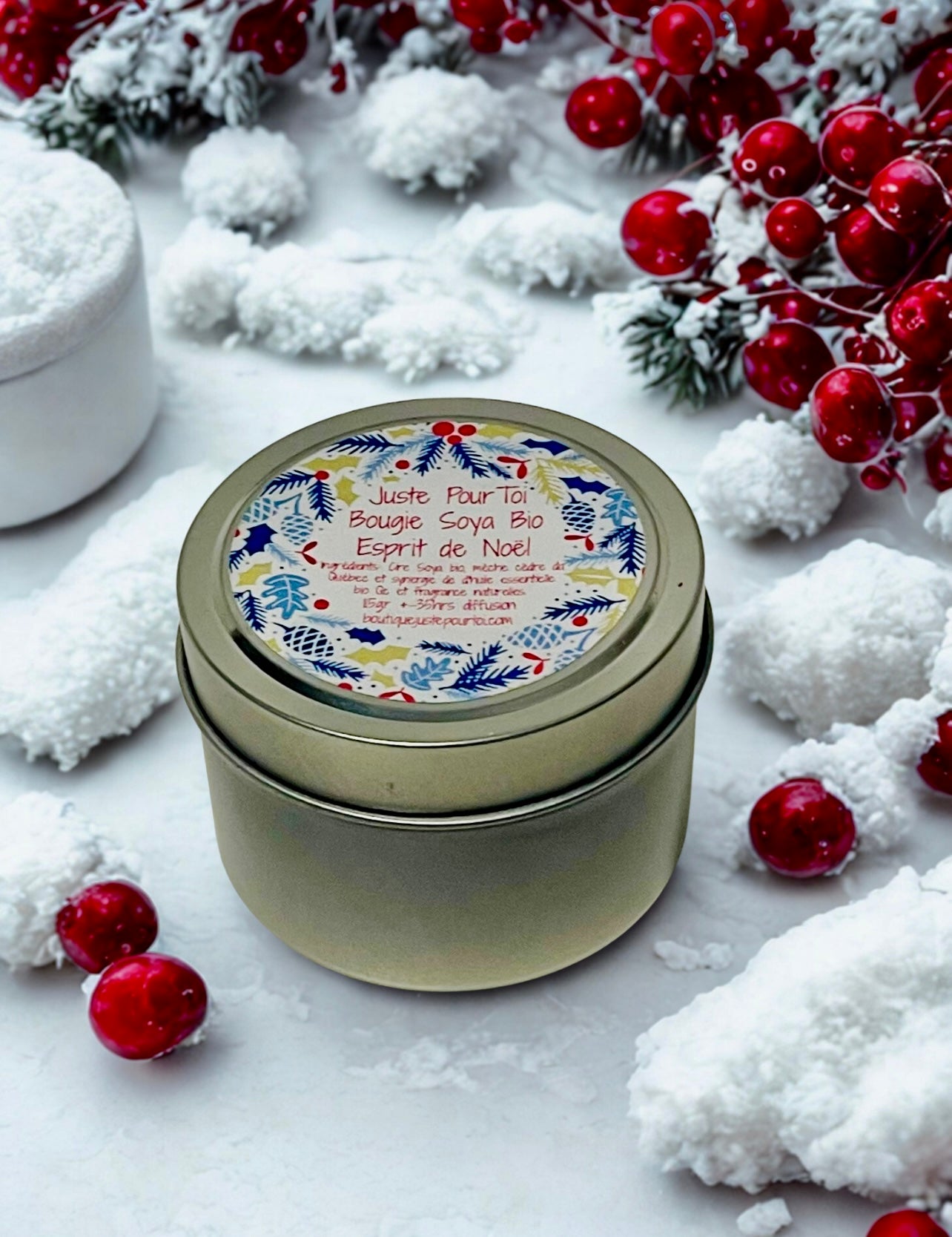 Esprit de Noël est une bougie naturelle au parfum d'airelles et d'épinette noire, elle est une véritable ode à la nature. Son parfum harmonieux allie la fraîcheur des airelles juteuses à la richesse boisée de l'épinette créant ainsi une expérience olfactive unique et captivante.