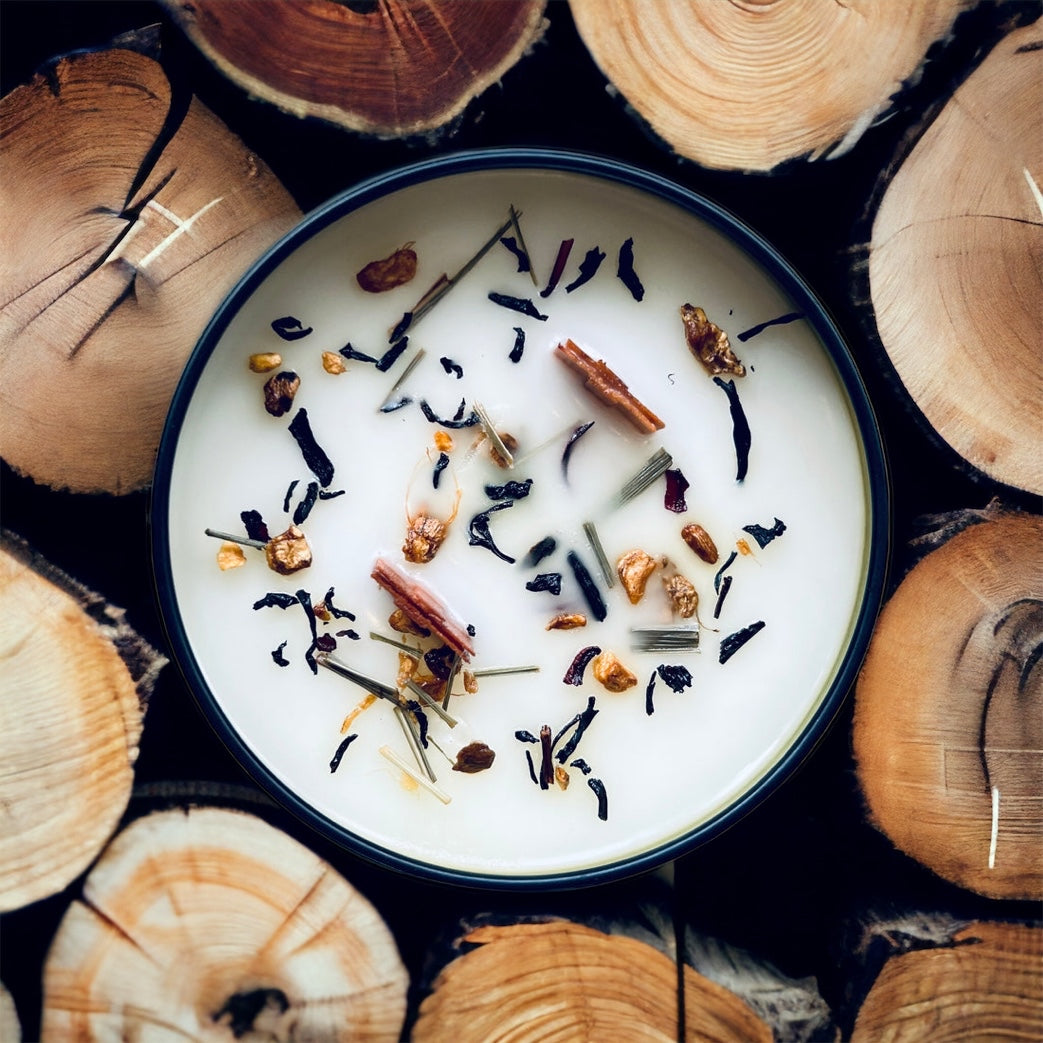 Chaque bougie est exclusive et décorée selon les fleurs et plantes médicinales disponibles en inventaire. Votre bougie peut donc être différente de celle représenté sur la photo.