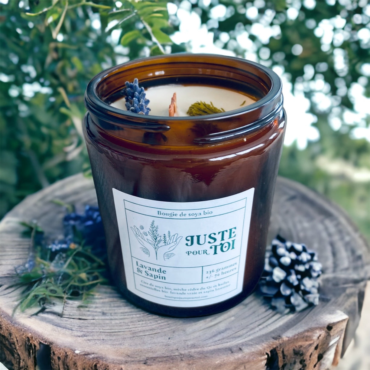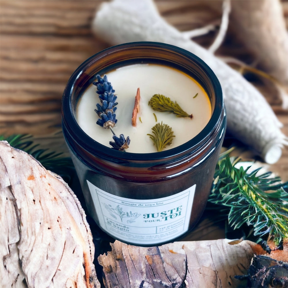 Lorsque vous allumez cette bougie lavande & sapin, elle embaume votre espace d'un parfum harmonieux. Les notes florales de la lavande apportent une douceur relaxante, tandis que le sapin évoque l'atmosphère fraîche d'une forêt en hiver. Cette combinaison crée une ambiance apaisante et revigorante, parfaite pour la détente et la méditation.