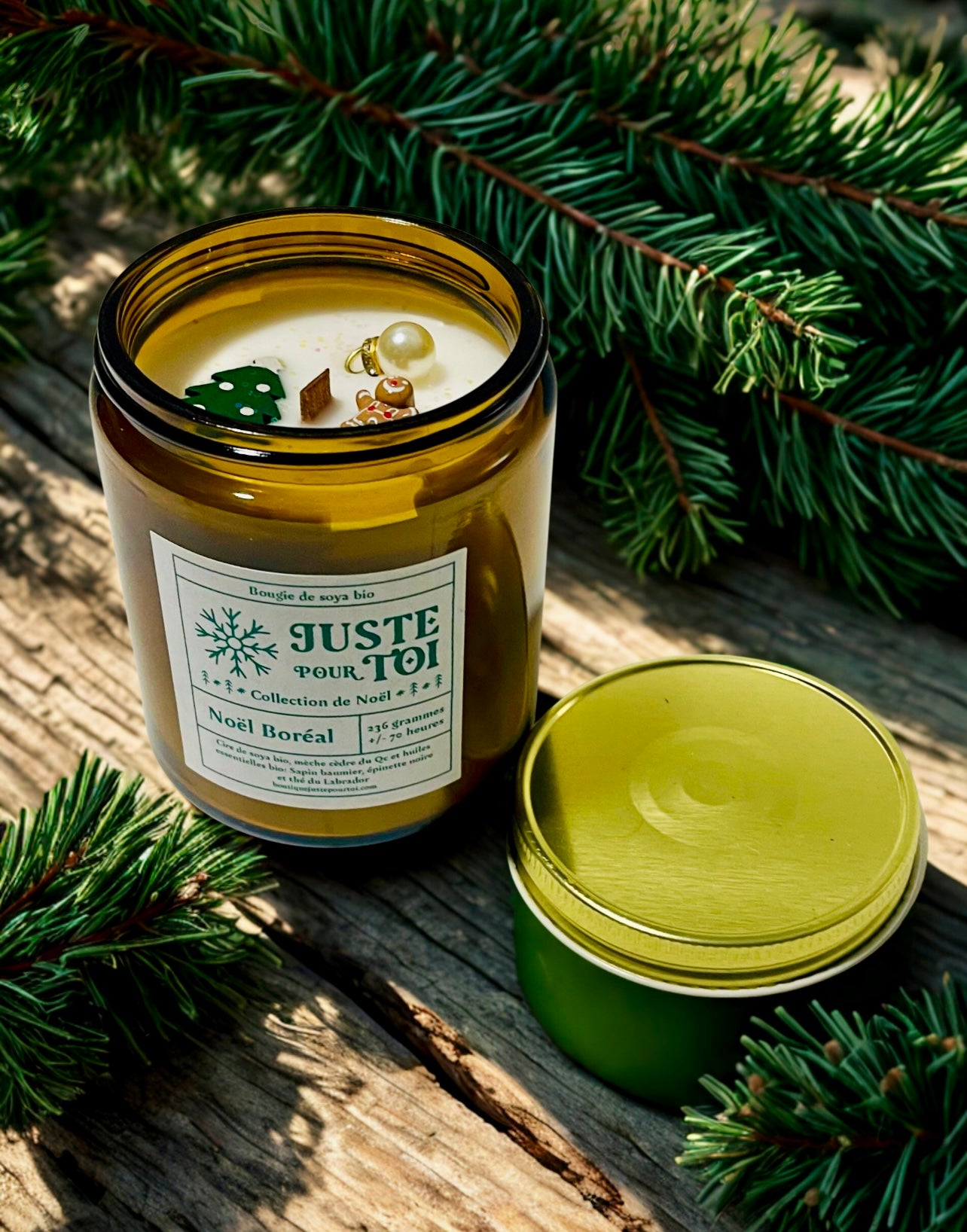 La bougie Noël Boréal est une invitation à plonger dans l'atmosphère magique et enchanteresse de la saison des fêtes dans les régions boréales. Cette bougie capture l'esprit de Noël avec des notes boisées, de sapinages et hivernales qui évoquent la beauté des paysages enneigés et les traditions festives.