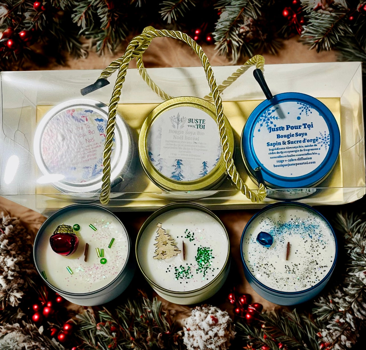 Ingrédients: Cire de soya bio, mèche cèdre du Qc et synergie d’huiles essentielles bio et fragrances naturelles +-35hrs