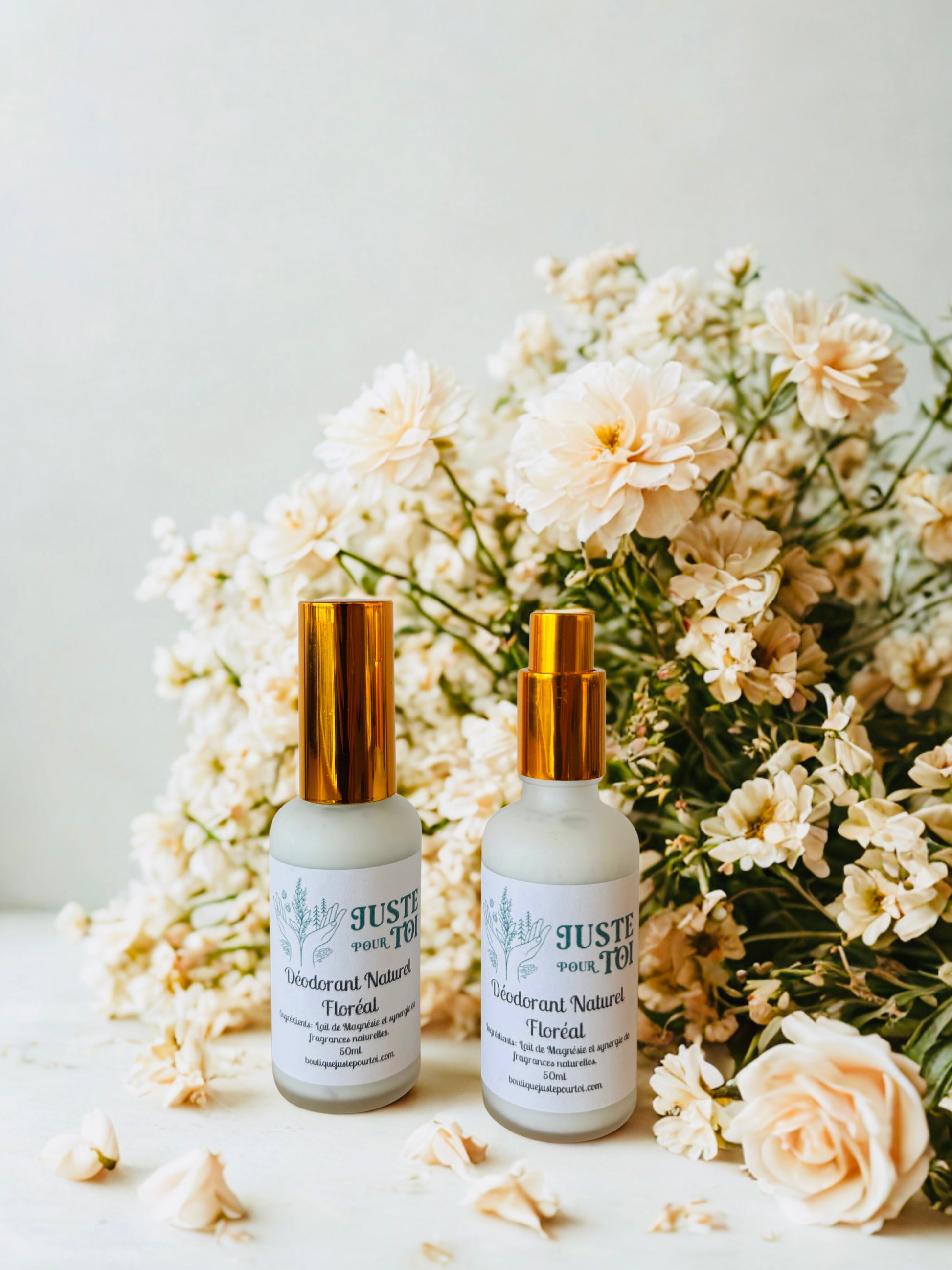Floréal est un déodorant naturel qui célèbre la fraîcheur et la délicatesse des fleurs. Sa fragrance légère et lumineuse offre une sensation propre, douce et harmonieuse, parfaite pour accompagner chaque moment de la journée.