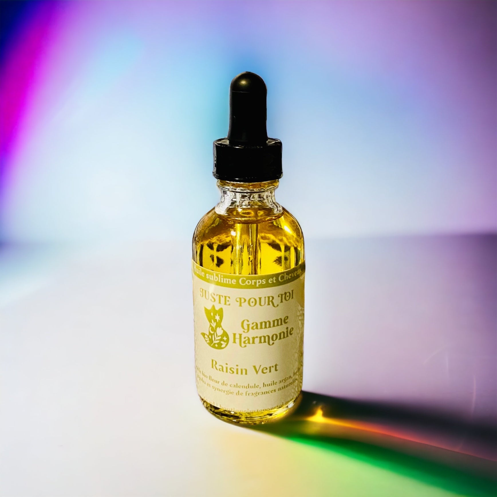 ingrédients: Huiles bio: Argan, calendule, jojoba, huiles essentielles bio et ou fragrances naturelles.