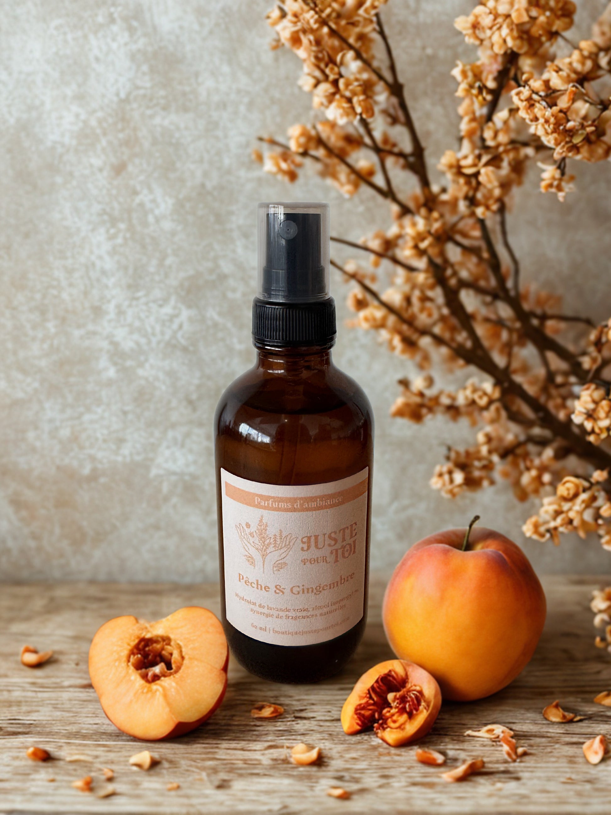Laissez-vous séduire par la finesse et la délicatesse de nos créations aromatiques haut de gamme et voluptueuses. Emerveillez vos sens à travers ce parfum d’ambiance Pêche &Gingembre est empreint de douceur et de confort pour garantir un bien-être optimal.