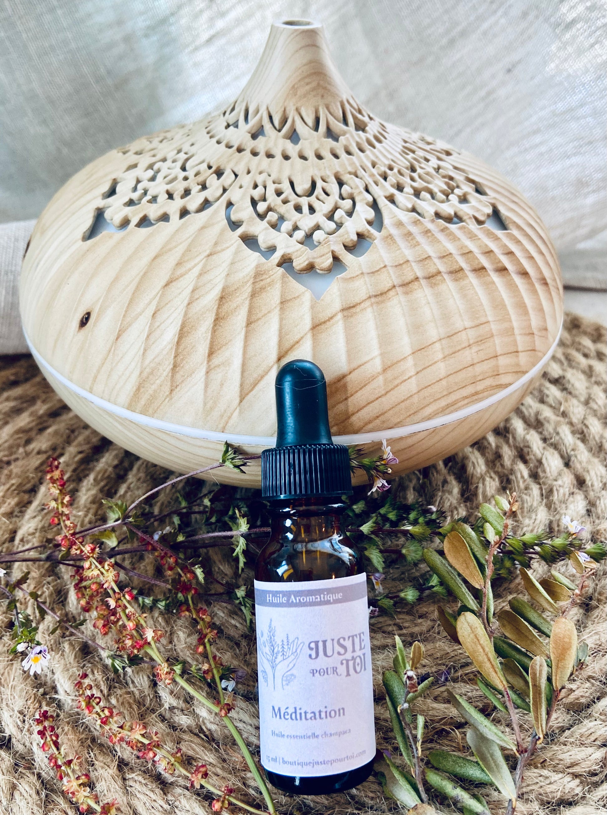 Plongez dans un état de calme profond et de sérénité avec notre huile de diffusion de méditation. Cette fragrance apaisante a été spécialement conçue pour vous aider à vous détendre, à vous recentrer et à atteindre un état de méditation plus profonde.