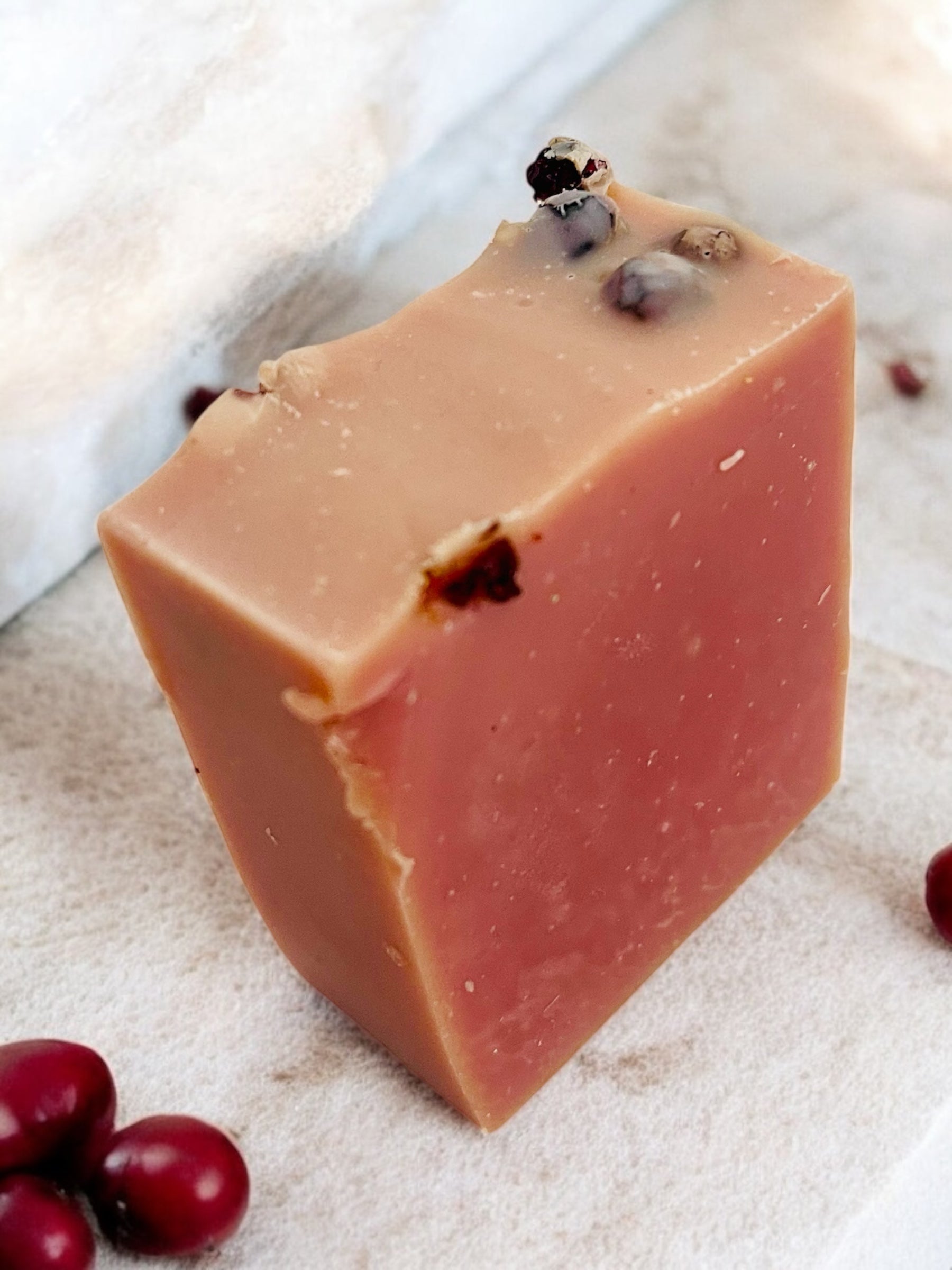 Un magnifique savon aux airelles qui possède un parfum acidulé qui rappelle celui de la canneberge et de la pomme grenade. L'airelles pousse en abondance en Minganie et tout comme tous ces petits fruits sauvages nordiques elle possède plusieurs propriétés bénéfiques pour la peau. Nous n'avons pas choisi cette petite baie au hasard: Il s'agit d'un puissant antioxydant! Ainsi elle favorise le rajeunissement, renforce les tissus conjonctifs et aide à lutter contre les rides, le plissement et le vieillissement prématuré!