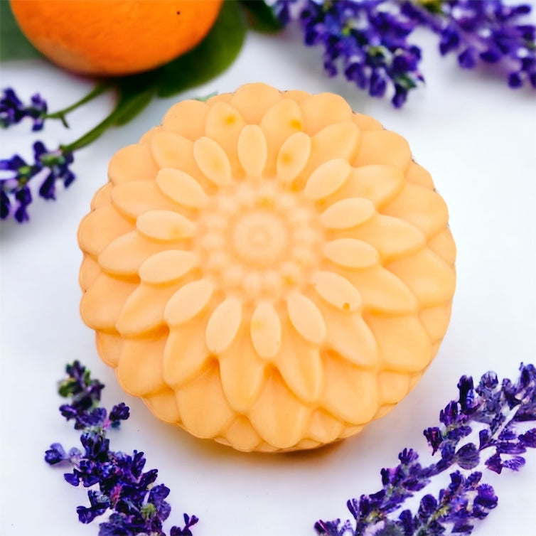 Ça sent le ciel et calme le pompon! Un savon tout en douceur et en fraîcheur avec ses effluves appaisantes. Ce savon calme-toi le pompon naturel nourrit votre épiderme et vous offre un moment de relaxation grâce aux propriétés calmantes de l'orange douce et de la lavande vraie.