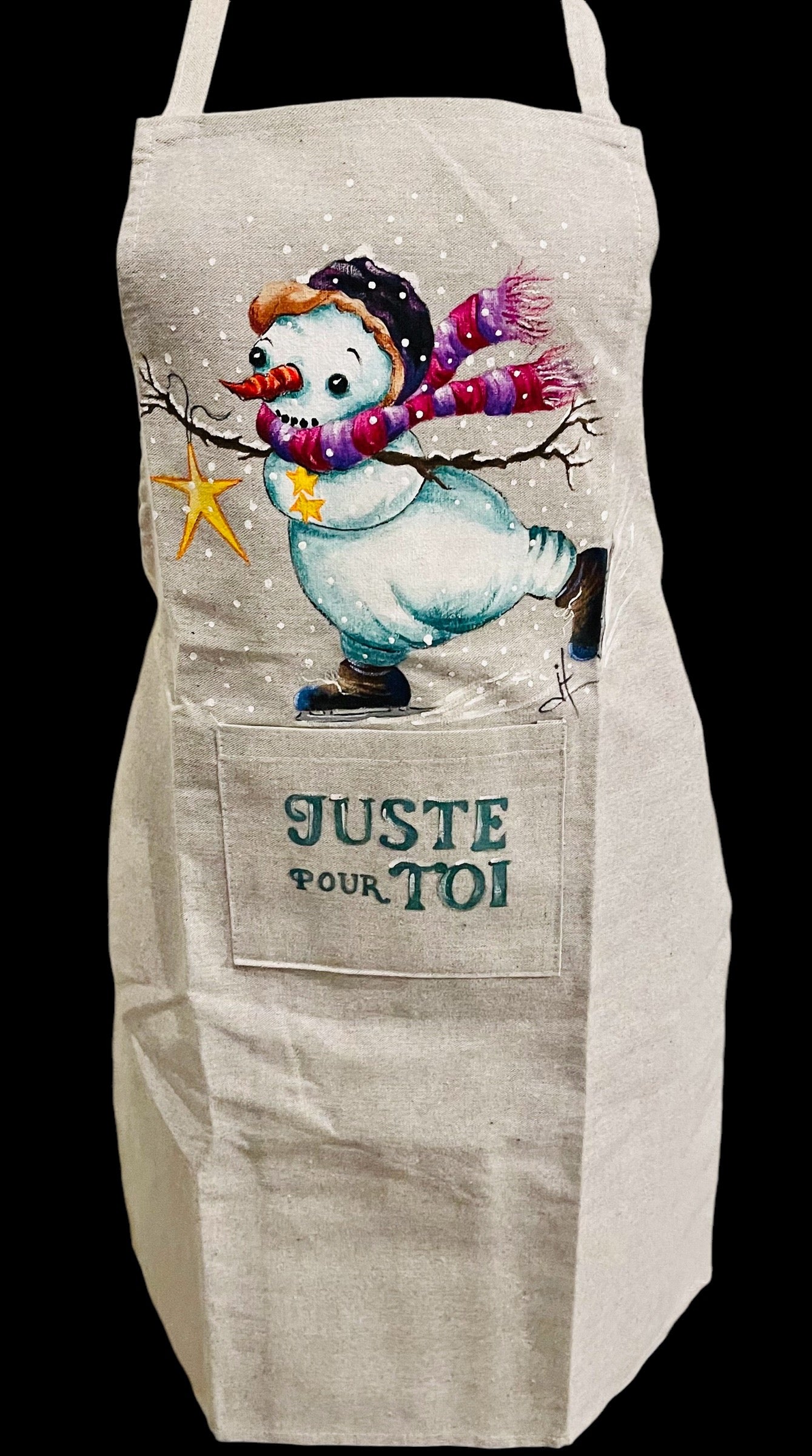 Tablier exclusif Juste Pour Toi peint à la main par une artiste et 100% lavable.